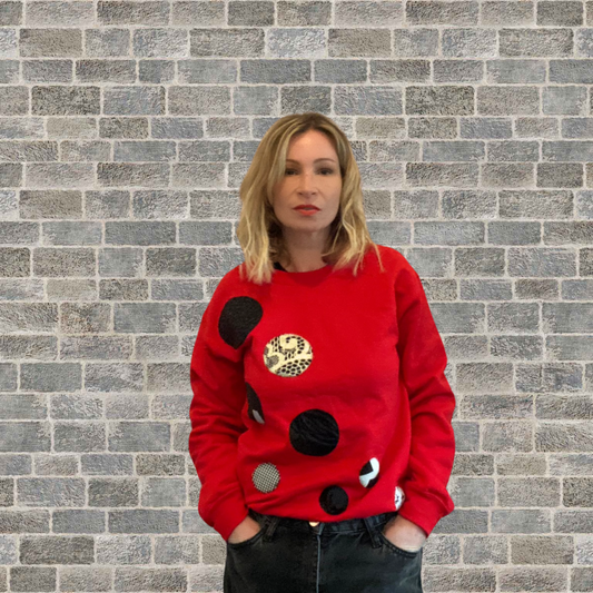 Red Sweatshirt | Monochrome Bouncing Balls (S)