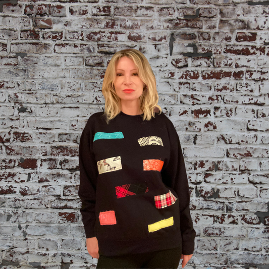 Black Sweatshirt | Multi Frayed Rectangle (M)