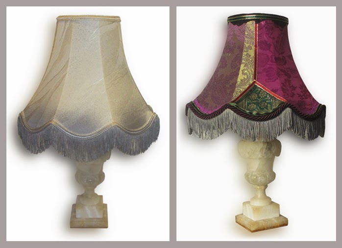 The lampshade recipient has a sophisticated taste and a penchant for 1920's style so I selected the fabrics and design with this in mind. I spray painted the fringe a neutral grey to which enables an even finish. As metallic embellishment is part of my signature, gold fragments provided the finishing touches. I think that it has a touch of Persian style to it.